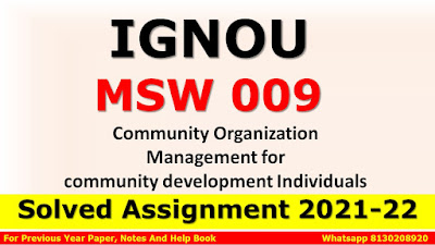 MSW 009 Solved Assignment 2021-22: for college kids – MSW 009 Community Organization Management for community development Solved Assignment 2021-22, Students are advised that after successfully downloading their Assignments, you’ll find each and every course assignments of your downloaded. Candidates got to create separate assignment for the IGNOU Master Course, so as that it’s easy for Evaluators to ascertain your assignments.