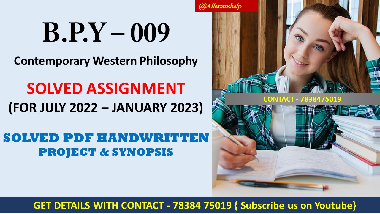 Free BPY 009 Solved Assignment English Medium 2022-23 for July 2022 and January 2023 Session, All IGNOU Assignments (Programme Wise) · Master's Degree Programmes · Bachelor's Degree Programmmes · P.G. Diplomaa Programmes · Diploma Programmes · Certificate Programmes. IGNOU Assignment 2022-23 (UPDATED) Get Here. IGNOU Assignment Status 2022-23, Marks, Grade Card, Practical Submission